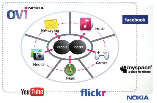 諾基亞的鮮明主張是:移動互聯(lián)網的發(fā)展與推進,必須最大限度地開發(fā)融合“人”與“地”的移動應用,突顯互聯(lián)網所沒有的一些特性,而絕不能簡單地將互聯(lián)網的應用照搬到手機上。