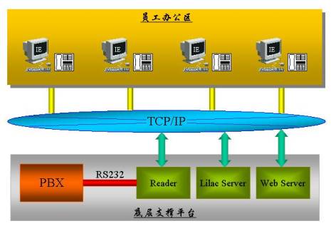 系統(tǒng)構(gòu)造基于Web/Brower方式,每個員工端無需安裝任何軟件,只需通過啟動IE,輸入您的分機(jī)號便可方便地選擇自己當(dāng)天的工作位置。