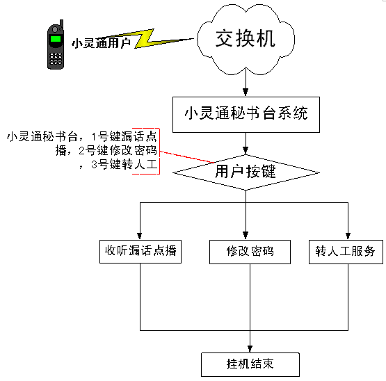小靈通秘書臺(tái)業(yè)務(wù)系統(tǒng)結(jié)構(gòu)見下圖: