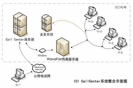 這些工作用傳統(tǒng)傳真機(jī)處理時(shí),存在問(wèn)題是:效率低,難管理,成本高,難以監(jiān)控進(jìn)度。其解決方案便是借助Call Center和專業(yè)傳真服務(wù)器的整合。