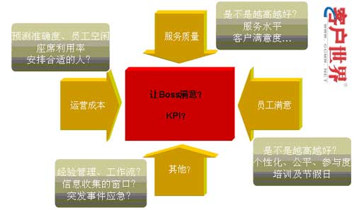 所以,我們認(rèn)為呼叫中心的運(yùn)營(yíng)解決方案,應(yīng)該綜合協(xié)調(diào)人力資源管理、話(huà)務(wù)預(yù)測(cè)、自動(dòng)排班、績(jī)效考評(píng)、話(huà)務(wù)分析、現(xiàn)場(chǎng)管理、實(shí)時(shí)預(yù)警等各個(gè)現(xiàn)場(chǎng)管理要素。各個(gè)要素之間即是相互獨(dú)立,又相互關(guān)聯(lián)的,系統(tǒng)通過(guò)設(shè)置目標(biāo)值,達(dá)到管理目標(biāo)的均衡,這個(gè)平衡,從最核心的體現(xiàn)來(lái)看,就是一個(gè)完整的KPI體系中各個(gè)指標(biāo)的實(shí)現(xiàn)。
