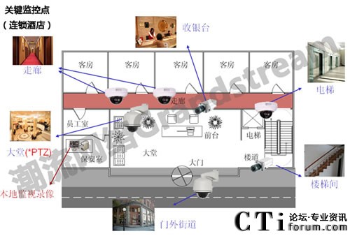 采用潮流網(wǎng)絡(luò)提供的網(wǎng)絡(luò)監(jiān)控平臺來加強(qiáng)管理和提高各個(gè)門市的服務(wù)質(zhì)量。由于是連鎖酒店,所以高層主管無法時(shí)時(shí)刻刻在各個(gè)酒店內(nèi)管理,讓高層對于酒店內(nèi)的營運(yùn)管理十分頭痛,所以當(dāng)主管在裝設(shè)監(jiān)控系統(tǒng)時(shí)要求希望達(dá)到透過Internet的集中監(jiān)控、分散管理,監(jiān)控中心的操作平臺方面希望能使用人性化的界面簡單不繁瑣。潮流網(wǎng)絡(luò)的監(jiān)控系統(tǒng)可展開樹狀目錄進(jìn)行不同地域的階層式管理,高層主管可透過網(wǎng)絡(luò)進(jìn)行“跨地域、跨網(wǎng)域”的實(shí)時(shí)監(jiān)看,隨時(shí)可掌控酒店內(nèi)的營運(yùn)狀況,無需再親自到酒店。