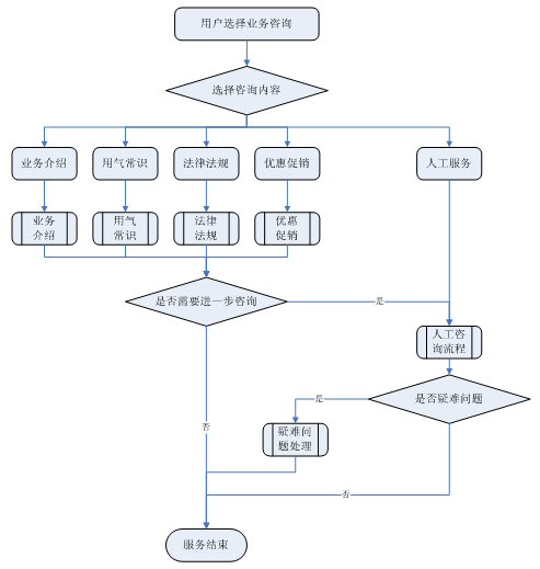 業(yè)務(wù)咨詢(xún):用戶(hù)通過(guò)人工、自動(dòng)語(yǔ)音等方式咨詢(xún)有關(guān)政策法規(guī)、資費(fèi)標(biāo)準(zhǔn)、用氣常識(shí)、報(bào)裝方法等,系統(tǒng)以語(yǔ)音、傳真、Email、短消息等方式回復(fù)客戶(hù)。