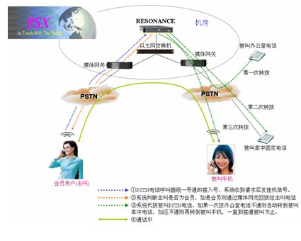 - 一號(hào)通:軟交換實(shí)現(xiàn)的對(duì)來(lái)自PSTN的呼叫提供一號(hào)通功能,電話(huà)可連續(xù)呼轉(zhuǎn)至5個(gè)不同的號(hào)碼;