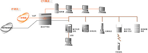 混合 IP PBX(用戶級(jí)交換機(jī))可以作為強(qiáng)大的高附加值的中心CTI 系統(tǒng)的核心設(shè)備。