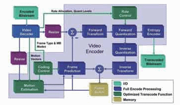 過去幾年來,業(yè)界針對轉(zhuǎn)碼工作提出了幾種不同的方法,可提高處理與存儲器資源的使用效率。大多數(shù)這種方案都建立在這樣一種認(rèn)識基礎(chǔ)之上,即我們能通過更先進(jìn)的技術(shù)對初始編碼過程中創(chuàng)建的量子化和頻率域信息進(jìn)行修改,更好地加以利用,摒棄其中無用的東西,而不必簡單地對原始視頻內(nèi)容進(jìn)行重構(gòu)。