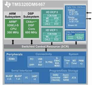 圖3:基于達(dá)芬奇技術(shù)的TMS320DM6467數(shù)字媒體處理器方框圖