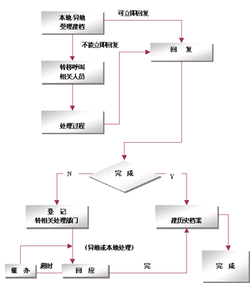 整個網(wǎng)絡(luò)采用只在集中受理中心設(shè)立一個集中監(jiān)控系統(tǒng),負責(zé)監(jiān)控全網(wǎng)的客戶業(yè)務(wù)、服務(wù)、技術(shù)支持和投訴等等業(yè)務(wù),該系統(tǒng)基于事件管理的思想,提供包括創(chuàng)建、解決、分配、反饋、跟蹤、回訪等節(jié)點在內(nèi)的閉環(huán)處理模式。例如系統(tǒng)可以根據(jù)客戶反映問題的時間以及緊急程度,按照系統(tǒng)約定的處理時限對處理過程實時跟蹤和記錄,當(dāng)處理超時時回自動給出報警信息,提示相關(guān)的操作人員及主管人員。同時根據(jù)約定還可以將受理的問題按照約定的方式自動發(fā)送到相關(guān)的處理部門,由處理部門進行處理。