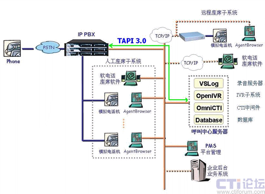 那么如何利用TAPI技術(shù)構(gòu)建現(xiàn)代呼叫中心呢?傳統(tǒng)呼叫中心的做法是每個(gè)坐席配一部電話。而采用TAPI 3.0技術(shù),完全不需要每個(gè)座席再配一部電話,我們只需一臺電腦終端,配以PC麥克風(fēng)和耳機(jī)即可為客戶服務(wù),因?yàn)楫?dāng)普通電話呼叫轉(zhuǎn)到座席時(shí),語音是經(jīng)過轉(zhuǎn)換壓縮為IP包進(jìn)行收發(fā)的。我們可以利用TAPI技術(shù)提供的全套API標(biāo)準(zhǔn)函數(shù)來控制CTI的硬件,包括IPPBX或者板卡,來實(shí)現(xiàn)這種模式的呼叫中心,并且實(shí)現(xiàn)簡單,比較適合在原有系統(tǒng)上的升級換代。