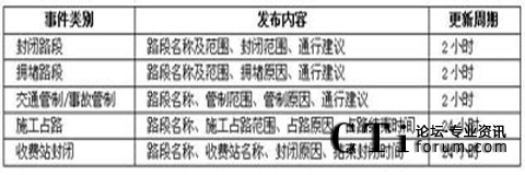即時(shí)路況信息發(fā)布主要通過自動(dòng)語音播報(bào)。發(fā)布內(nèi)容建議如下表所示: