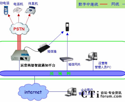 企業(yè)用戶管理人員通過internet網(wǎng)絡(luò)訪問智能通知平臺,并將通知相關(guān)信息上傳,然后由智能通知平臺自動完成通知任務(wù)。