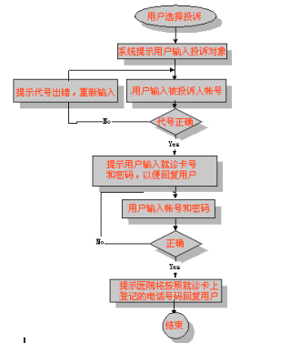 在處理用戶投訴時,要求對醫(yī)院所有服務(wù)人員分配代碼。用戶投訴時按照服務(wù)代碼進(jìn)行投訴。同時,醫(yī)院將對所有投訴用戶進(jìn)行回復(fù)。如通告處理結(jié)果,向用戶道歉等。對用戶回復(fù)時,將按照用戶在申請就診卡時留下的電話號碼進(jìn)行回復(fù)。這種也可以促使用戶留下真實的電話號碼。用戶可以到醫(yī)院電話號碼。