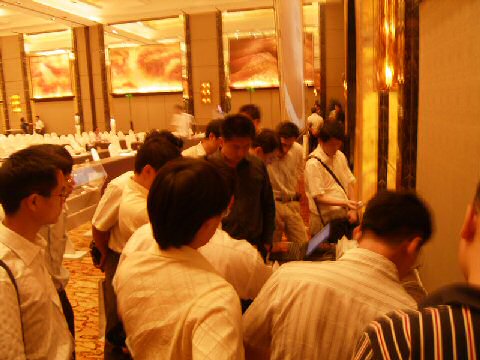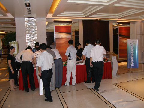 。。在茶歇期間,3Com的產品經理朱海翔先生、技術顧問黃海濤先生及NBX中國代理北京網音的銷售代表和與會的朋友們進行了熱烈的交流,與會的朋友們對NBX通訊產品均表示出極大的關注與濃厚的興趣,爭相與現(xiàn)場做演示NBX通訊系統(tǒng)進行零距離的"親密接觸",感受網絡電話帶來的魅力。大家所提出的問題也涵蓋了從話機功能到如何實現(xiàn)異地互聯(lián)等諸多實際功能,在獲得詳實答案后,對NBX通訊產品充滿了信心。此時此刻,香格里拉大酒店的宴會廳里,談論NBX的聲音充滿了每一個角落。