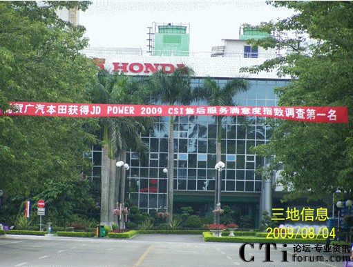 CTI論壇(ctiforum)08月05日消息:2009年7月30日,J.D.Power亞太發(fā)布了最新一期2009年中國售后服務滿意度指數(shù)調(diào)研(CSI)報告,廣汽本田售后服務榮登汽車行業(yè)客戶滿意度榜首,受到高度贊揚,得到了消費者的肯定。