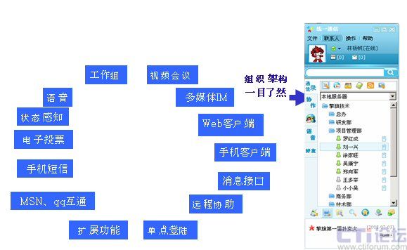 - 企業(yè)人性化的應用:我的部門、常用聯系人、工作組支持、消息廣播