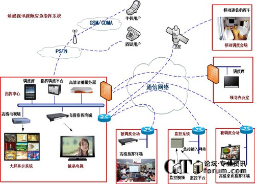 根據(jù)應(yīng)急管理的需求,視頻通信應(yīng)急指揮系統(tǒng)應(yīng)滿足以下四大特點:直觀、部署靈活、反應(yīng)迅速、支持大信息量。視頻通信應(yīng)急指揮從功能應(yīng)用上應(yīng)實現(xiàn)統(tǒng)一指揮、圖像傳輸、視頻會議、全程錄制。迪威視訊公司結(jié)合在視頻會議和視頻監(jiān)控領(lǐng)域內(nèi)的技術(shù)優(yōu)勢和產(chǎn)品優(yōu)勢,形成了一套完善的、切合應(yīng)急指揮實際需求的系統(tǒng)性解決方案。當(dāng)自然災(zāi)害、事故災(zāi)難、公共衛(wèi)生事件、社會安全事件等突發(fā)事件發(fā)生時,可通過視頻通信應(yīng)急指揮系統(tǒng),遠(yuǎn)程調(diào)度所有相關(guān)圖像資源,為統(tǒng)一部署各項應(yīng)急對策提供依據(jù),然后配合總體應(yīng)急預(yù)案進(jìn)行遠(yuǎn)程指揮,以最快的速度完成最合理的決策,并根據(jù)應(yīng)急管理需求,將圖像資源傳達(dá)到應(yīng)急指揮中心、各應(yīng)急管理工作機(jī)構(gòu)及突發(fā)事件一線。