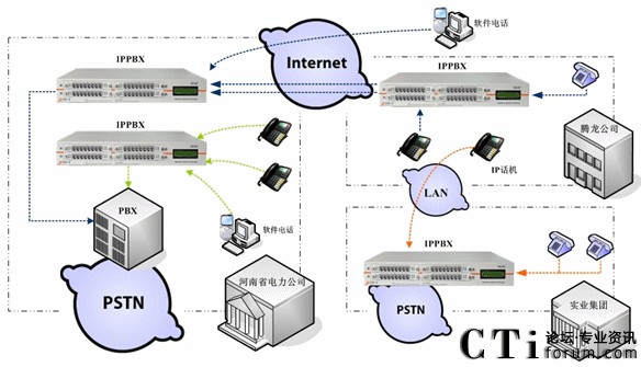 · “騰龍公司”需要組建內(nèi)部電話網(wǎng),并且可以與“河南電力”進(jìn)行VoIP通話?梢赃M(jìn)行電話會(huì)議;