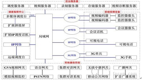 前端視頻設(shè)備包括模擬/數(shù)字視頻監(jiān)控設(shè)備、3G單兵設(shè)備、可視電話、3G手機(jī)等視頻設(shè)備。視頻監(jiān)控設(shè)備通過(guò)編碼器接入到IP網(wǎng)絡(luò)內(nèi),3G單兵設(shè)備和3G手機(jī)通過(guò)3G網(wǎng)絡(luò)接入到IP網(wǎng)絡(luò);可視電話可直接接入到IP網(wǎng)絡(luò)內(nèi)。