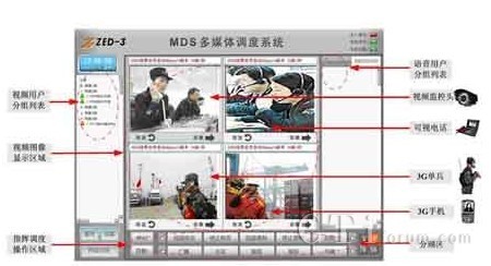 一方面,MDS系統(tǒng)可實(shí)現(xiàn)對(duì)行業(yè)用戶各種終端類型的調(diào)度,如通過(guò)有線IP網(wǎng)絡(luò)實(shí)現(xiàn)對(duì)有線調(diào)度話機(jī)進(jìn)行語(yǔ)音調(diào)度,對(duì)固定點(diǎn)監(jiān)控?cái)z像頭進(jìn)行視頻調(diào)度;通過(guò)PSTN/GSM/CDMA/3G網(wǎng)絡(luò)實(shí)現(xiàn)對(duì)外線電話進(jìn)行遠(yuǎn)程語(yǔ)音調(diào)度;通過(guò)3G網(wǎng)絡(luò)實(shí)現(xiàn)對(duì)遠(yuǎn)程單兵人員進(jìn)行遠(yuǎn)程音視頻調(diào)度;通過(guò)無(wú)線寬帶網(wǎng)絡(luò)實(shí)現(xiàn)對(duì)移動(dòng)終端進(jìn)行音視頻調(diào)度;通過(guò)IP網(wǎng)絡(luò)召開(kāi)遠(yuǎn)程視頻會(huì)議。