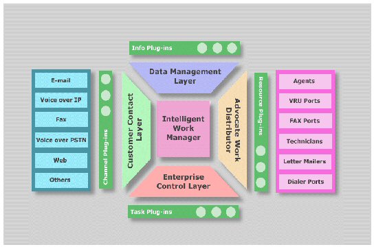 上圖為以CRM 為中心的呼叫中心體系結(jié)構(gòu)