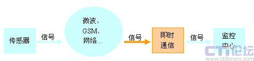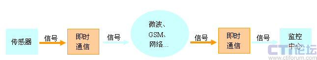圖2是將遠程監(jiān)測系統(tǒng)的一種典型建議方案,這種方案是主要用來優(yōu)化監(jiān)控中心的功能。傳感器將信號通過遠程網(wǎng)絡(luò),直接傳入即時通信的輸入節(jié)點。即時通信可以利用TCP/IP網(wǎng)絡(luò),將數(shù)據(jù)送往監(jiān)控中心,同時也可以根據(jù)策略要求,送達即時通信多個客戶端,實現(xiàn)對多人同時報警的作用。