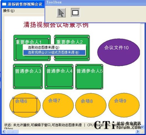 簡單的操作以后,一個(gè)生動(dòng)的會(huì)議場面就出現(xiàn)在眼前。效果如圖一所示。軟件屏幕墻的使用讓每個(gè)參會(huì)人又重新找回了聚在了一個(gè)會(huì)議室里進(jìn)行會(huì)議的感覺。 具體的操作請(qǐng)參見用戶手冊(cè)會(huì)議屏幕墻的使用。