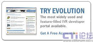 Evolution是一個(gè)免費(fèi)的面向開發(fā)人員的互聯(lián)網(wǎng)社區(qū)門戶。通過基于WEB頁面的圖形化的IVR應(yīng)用設(shè)計(jì)和開發(fā)環(huán)境,提供類似工作流的開發(fā)方式,使得開發(fā)人員即使不了解VoiceXML和CCXML規(guī)范也能開發(fā)出高質(zhì)量的IVR應(yīng)用系統(tǒng)。Voxeo通過Evolution為開發(fā)人員提供免費(fèi)的開發(fā)和測試環(huán)境,開發(fā)人員可以自由地在Evolution社區(qū)中開發(fā)、部署和測試各種復(fù)雜的應(yīng)用。Voxeo為開發(fā)人員提供免費(fèi)的全天候的技術(shù)支持。目前有超過33,000的開發(fā)人員在Voxeo的開發(fā)社區(qū)中注冊并開發(fā)和測試他們各自的應(yīng)用。