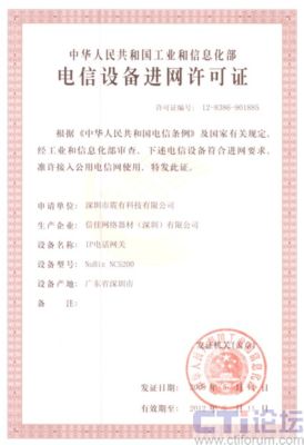 CTI論壇(ctiforum)05月15日消息: 日前從深圳市震有科技有限公司傳出消息,公司自主研發(fā)的NuBiz NC5200 IP電話網關設備順利通過工業(yè)和信息化部電信設備認證中心的審核,取得“電信設備進網許可證”。此舉標志著震有科技的NuBiz交換產品已成功取得進入國家電信網的資質,為大規(guī)模電信級推廣應用打下了基礎。