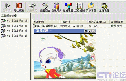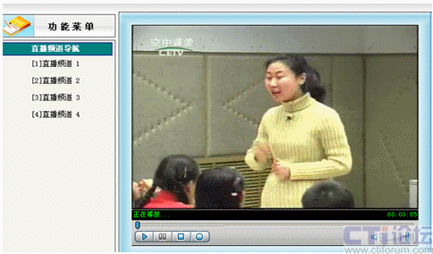 先在直播系統(tǒng)里啟動設(shè)置好的01號頻道,其他教師就可以在各自辦公室通過計算機(jī)網(wǎng)絡(luò)觀看遠(yuǎn)教節(jié)目,不需淘神費(fèi)力地到專門的接收室了。如下圖: