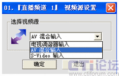 其中支持三種視頻源:從電視調(diào)諧器輸入是對應(yīng)電視光纖信號輸入,av混合輸入則對應(yīng)從電視卡的av端子輸入,s-video輸入對應(yīng)從S-video端子輸入。由于遠(yuǎn)教接收機(jī)只能輸出av信號,我這里是連接電視卡的av端子接收遠(yuǎn)教電視節(jié)目的。因此這里選擇“AV混合輸入”,確定即可。