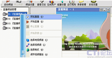 用鼠標(biāo)右鍵點(diǎn)擊直播頻道管理下的某個頻道號,我這里選擇01:在彈出的右鍵菜單中選擇“直播頻道設(shè)置”或者點(diǎn)擊工具欄里的“頻道設(shè)置”圖標(biāo),出現(xiàn)下面的設(shè)置圖: