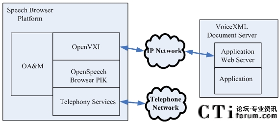 OpenVXI本身只是VoiceXML平臺(tái)的一個(gè)組件[32],它只是提供了簡(jiǎn)單的語音識(shí)別、語音提示和TTS(text-to-speech)功能。而對(duì)于電話功能,由于語音卡的種類繁多,同時(shí)VoIP(Voice
