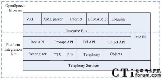 3.Telephony Interface:提供呼叫控制服務(wù),包括發(fā)送語音平臺(tái)的時(shí)間、轉(zhuǎn)接和掛斷電話。OpenSpeech Browser