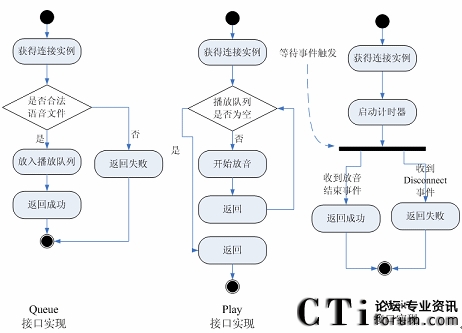 對(duì)于放音接口,所需要關(guān)注的是3個(gè)函數(shù)的實(shí)現(xiàn):Queue()接口、Play()接口和Wait()接口。