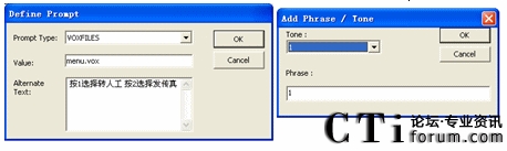 圖5.6 菜單節(jié)點(diǎn)放音文件和按鍵配置對話框圖
