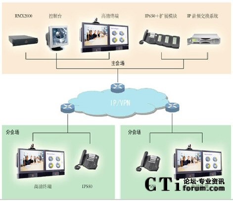 每個會場只需增加一部話機和一個IP地址,無需其他任何交換設備和電話號碼資源。