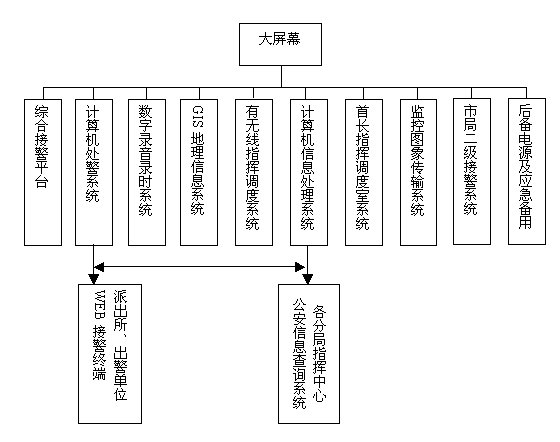 本次建設需要采用綜合通信技術(shù),將110、119、122系統(tǒng)的計算機網(wǎng)絡和有、無線通信網(wǎng)有機互聯(lián),建成集接處警信息獲取、統(tǒng)計、查詢、發(fā)布于一體,并通過地理信息和多媒體大屏幕顯示等輔助系統(tǒng)的綜合指揮調(diào)度,實現(xiàn)110、119、122快速反應、信息共享的目的。為此,各系統(tǒng)應分別具有下述功能: