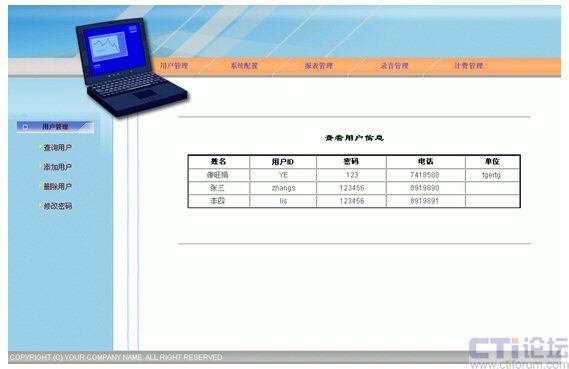 監(jiān)控功能:利用通話錄音、監(jiān)聽等手段,對服務質量進行監(jiān)控,實現(xiàn)對服務員的考核。