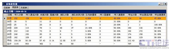 主要考察系統(tǒng)分項業(yè)務指標,如中繼線、分機、座席員、業(yè)務組等,便于了解系統(tǒng)運行狀況