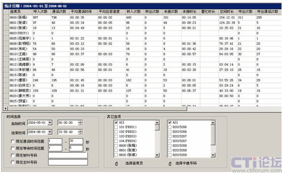 選定不同的座席員(單個或全部座席員),選定時間段內(nèi)的座席員服務指標。