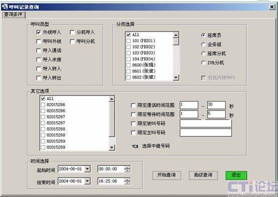 如圖所示,可以設定多種查詢條件組合,查找通話記錄。