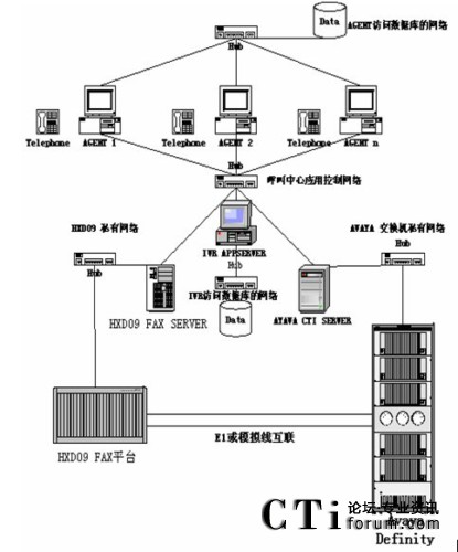 根據(jù)客服系統(tǒng)的容量,坐席多特點(diǎn),一般都采用國外品牌交換機(jī)做為接入設(shè)備,用HXD09設(shè)備作FAX或IVR系統(tǒng)?头臉I(yè)務(wù)主要為語音和傳真。HXD09系統(tǒng)在傳真和語音處理處理上在國內(nèi)產(chǎn)品的技術(shù)和價(jià)格上都有巨大優(yōu)勢。