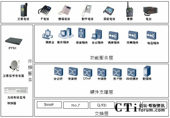 C網(wǎng)、G網(wǎng)、3G、PSTN網(wǎng)、VOIP網(wǎng)、衛(wèi)星電話、數(shù)字集群系統(tǒng)及短波電臺(tái)、超短波電臺(tái)及各頻段對(duì)講機(jī)等無(wú)線設(shè)備互聯(lián)互通。