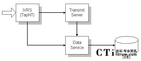 后臺(tái)程序使用Data Service 作為數(shù)據(jù)庫(kù)中間插件,TapNt(IVR)負(fù)責(zé)運(yùn)行流程。TapNt(IVR)查詢數(shù)據(jù)要通過(guò)Data Service來(lái)進(jìn)行。這項(xiàng)設(shè)置的目的在于使數(shù)據(jù)插件得到充分利用。當(dāng)話務(wù)量增多時(shí),可以多開幾個(gè)Data