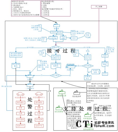 集成指揮調(diào)度系統(tǒng)的功能覆蓋了指揮調(diào)度的全部業(yè)務(wù)鏈,包括與110聯(lián)網(wǎng)處理警情、系統(tǒng)輔助下進(jìn)行處警指揮、調(diào)度警力和救援部門、交通疏導(dǎo)指揮、交通警保衛(wèi)、自動記錄跟蹤處理情況、總結(jié)優(yōu)化指揮調(diào)度方案等業(yè)務(wù)工作。