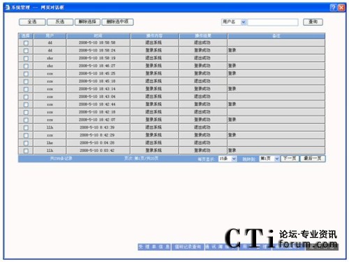 查詢:可以根據(jù)用戶名、時間、操作和操作結(jié)果為條件進行查詢,先選擇要查詢的字段,然后輸入查詢條件,點擊“查詢”按鈕查詢需要的結(jié)果。