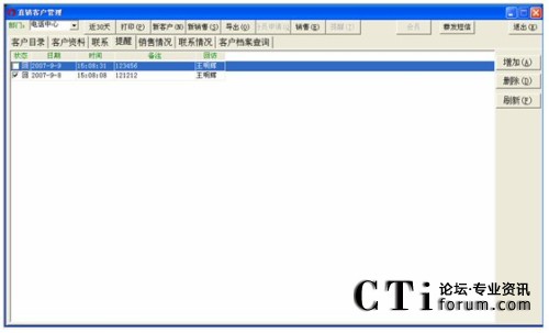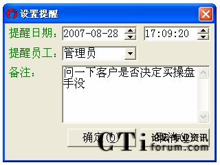 選定記錄并單擊新提醒,可以設(shè)定新的對(duì)該客戶(hù)的回訪時(shí)間。