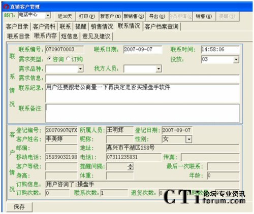 轉(zhuǎn)交:由直銷(xiāo)部門(mén)分配給回訪部進(jìn)行回訪的一些客戶(hù)資料。