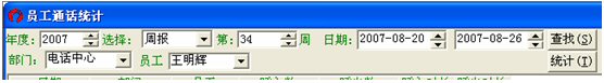 默認(rèn)的情況下是日?qǐng)?bào),下面以統(tǒng)計(jì)2007年度第34周,電話(huà)中心的員工王明輝為例: