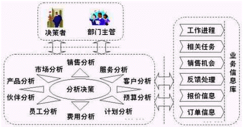 分析決策:決策是企業(yè)管理者必須經(jīng)常進(jìn)行的工作。決策對(duì)企業(yè)的意義十分重大,可以說決策水平的高低,決定了企業(yè)的競(jìng)爭(zhēng)力。然而,要想做出科學(xué)、正確的決策,就離不開對(duì)歷史和現(xiàn)實(shí)信息的分析。TurboCRM將企業(yè)的各種業(yè)務(wù)統(tǒng)一存儲(chǔ)在業(yè)務(wù)信息數(shù)據(jù)庫(kù)之中,這樣就為企業(yè)針對(duì)業(yè)務(wù)進(jìn)展情況作定量分析打下了堅(jiān)實(shí)的基礎(chǔ)。TurboCRM同時(shí)提供了多種分析工具,可以方便的對(duì)客戶、產(chǎn)品、進(jìn)程、任務(wù)、預(yù)算、計(jì)劃、費(fèi)用等等信息進(jìn)行分類統(tǒng)計(jì),用以分析銷售、市場(chǎng)和服務(wù)業(yè)務(wù)的運(yùn)行情況,從而做出科學(xué)、正確的決策。現(xiàn)在,紫光網(wǎng)聯(lián)可以隨時(shí)查詢到本月、本季度、本天等銷售情況,機(jī)會(huì)的跟蹤情況,某個(gè)產(chǎn)品的銷售情況,庫(kù)存情況等等。對(duì)于運(yùn)營(yíng)管理的重要統(tǒng)計(jì)和分析都可以做到實(shí)時(shí)、有效。為管理層大大地減輕了管理壓力。